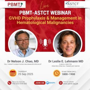 The Pakistan Blood and Marrow Transplant Group, hereafter referred to as PBMT is established on 14 February 2020 to allow health professionals and scientists in Pakistan involved in clinical blood and marrow transplantation and related cellular therapies to collaborate and participate in promoting high quality blood and marrow transplantation in the country.